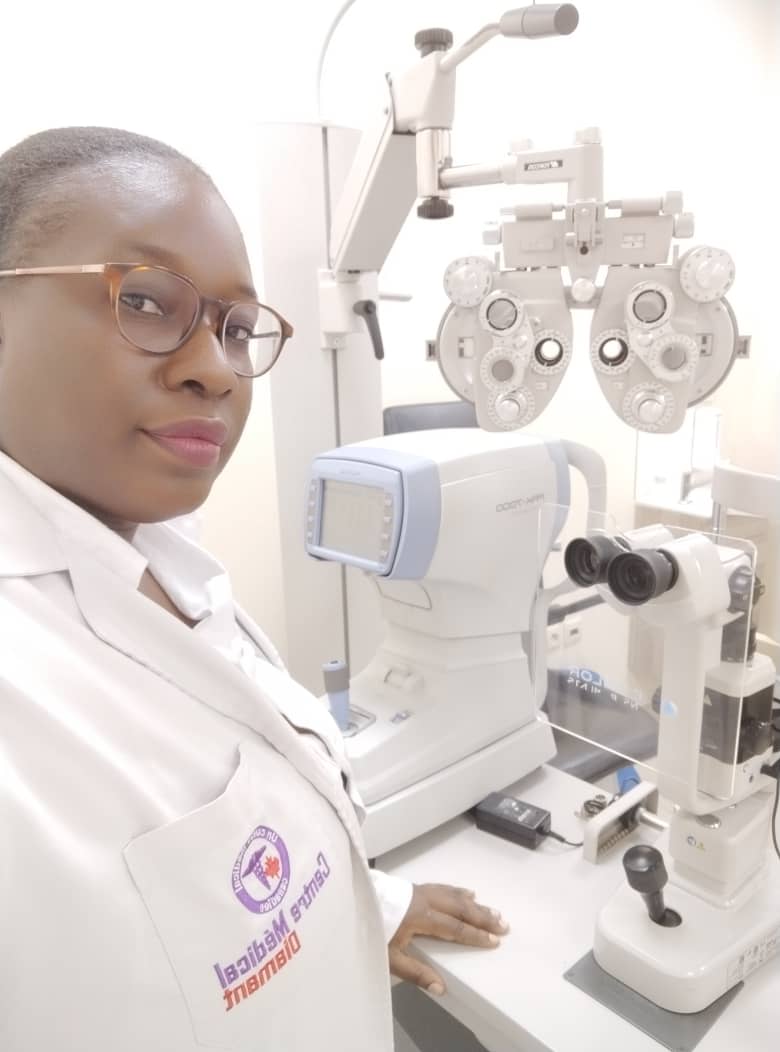Travail actuellement clinique IMTEC (institut des maladies de la tête et du cou), docteur Mar Ndiaye (ophtalmologue) comme orthoptiste